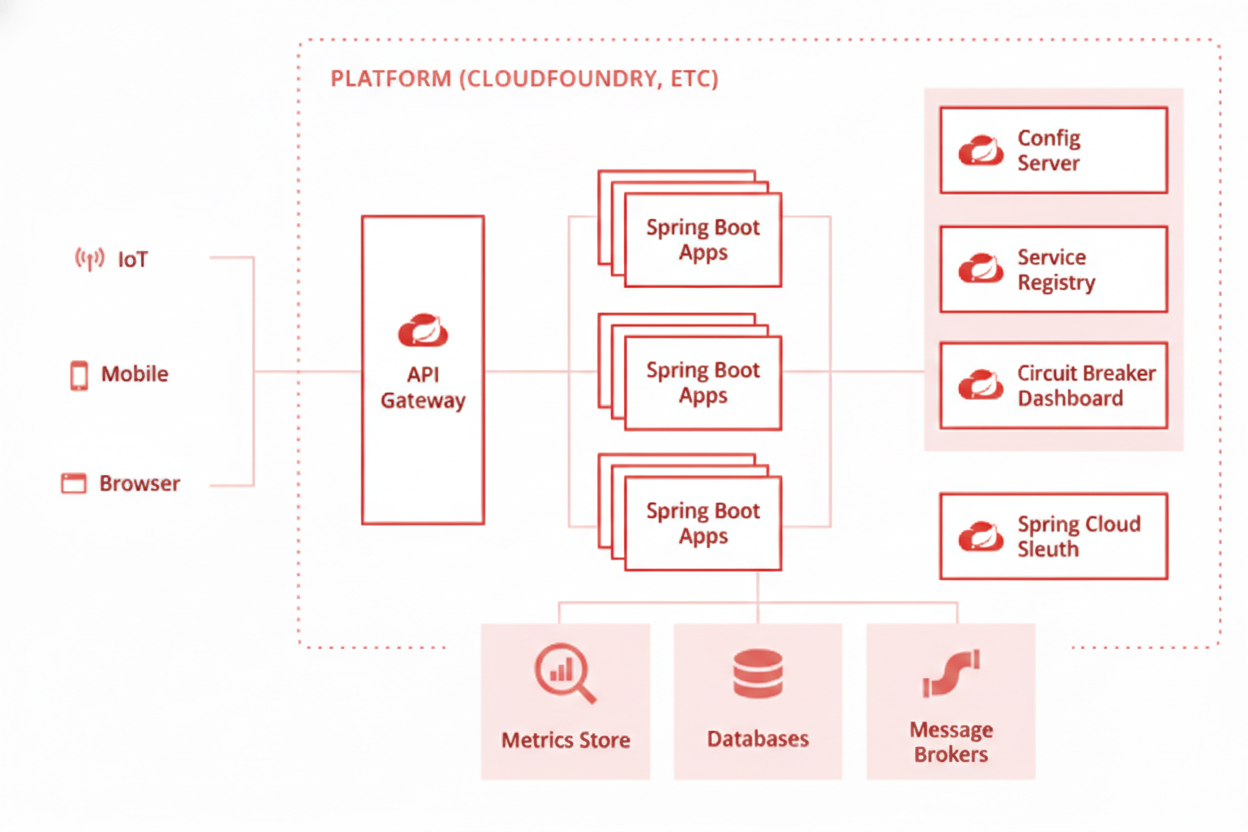 Because these services are separate and run on different machines/containers, many new problems appear.Spring Cloud gives ready-made solutions for these problems.
